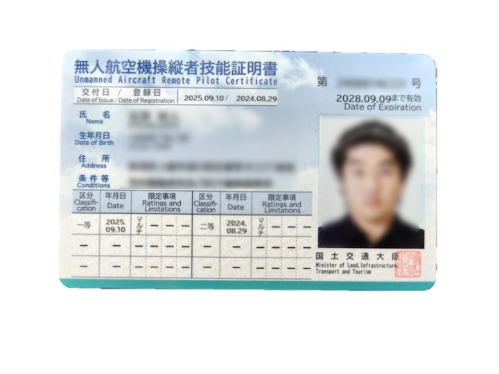 技能証明は、実施可能な飛行のカテゴリーに応じて一等無人航空機操縦士と二等無人航空機操縦士の2つの資格に区分されます。また、それぞれの資格において、無人航空機の種類や飛行の方法について限定(目視外飛行、夜間飛行、25kg以上の機体飛行)があります。これらはそれぞれに応じた試験を受けることで、限定の変更ができます。